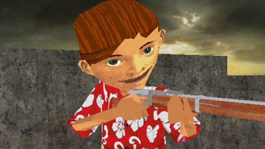 Gustave kills Scatman John after seeing his face. My second film, still kinda sucked. |